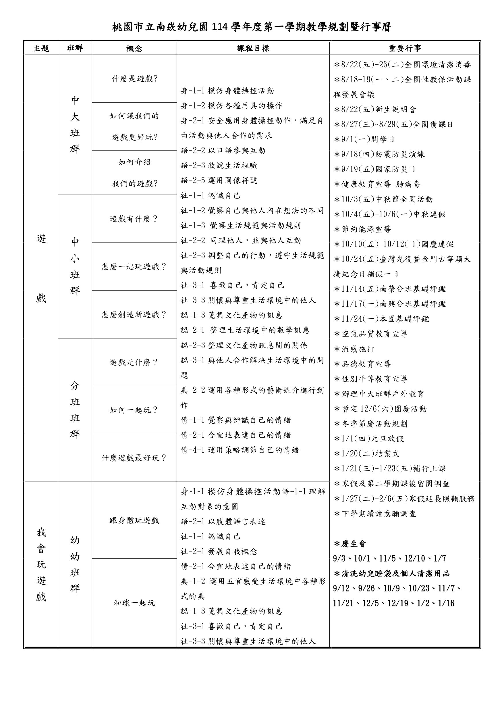 教學規劃暨行事曆