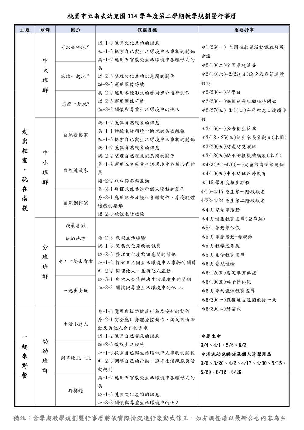 114學年度第二學期教學規劃暨行事曆