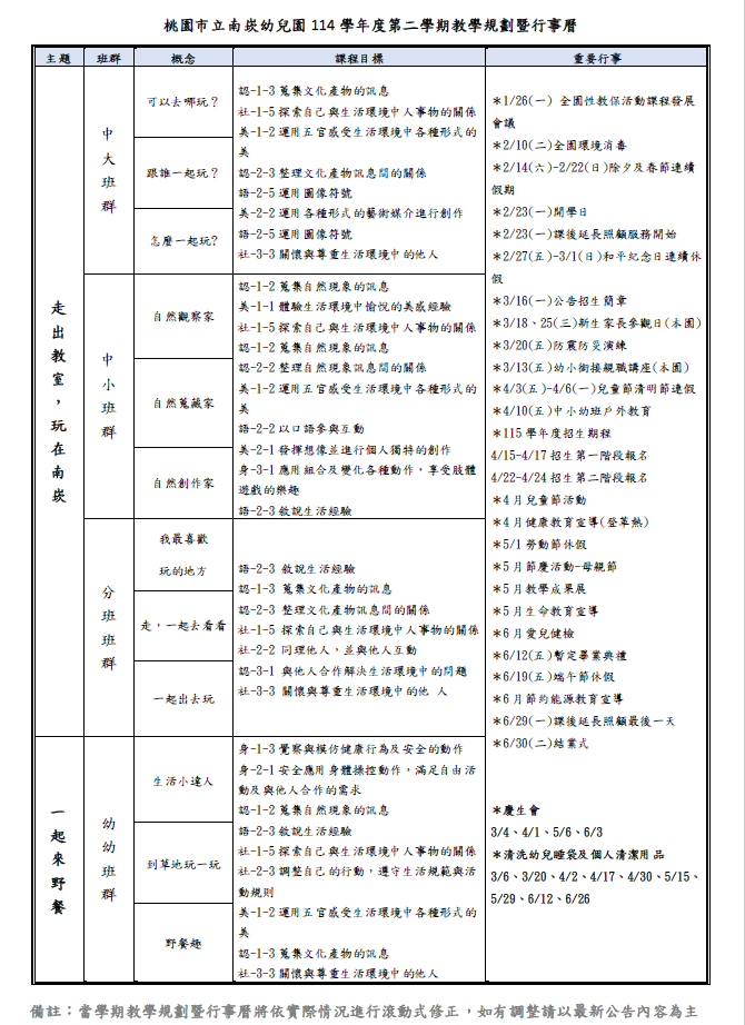 教學規劃暨行事曆